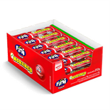 AÇÚCAR, XAROPE DE GLICOSE, GOMA BASE, CONFEITO VERMELHO, CONFEITO PRETO, ÓLEO VEGETAL DE PALMA, REGULADOR DE ACIDEZ ÁCIDO MÁLICO, ANTIAGLUTINANTE TALCO, AROMATIZANTES, GLACEANTES GOMA LACA, CERA DE CARNAÚBA E CERA DE ABELHA, UMECTANTE GLICERINA E CORANTES TARTRAZINA, AMARELO CREPÚSCULO FCF, VERMELHO 40 E AZUL BRILHANTE FCF. ALÉRGICOS: CONTÉM DERIVADOS DE SOJA. NÃO CONTÉM GLÚTEN.